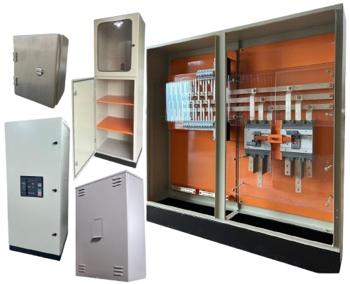 Quadros de distribuição e comando de energia dos maiores aos menores! Contemplam policarbonato de proteção, placa de montagem com ou sem barramentos de cobre eletrolítico estanhado e disjuntores. Painéis modulares com ou sem laterais e fundo removíveis, aletas para ventilação, dispositivo para lacre, fechos metálicos e muito mais para garantir a melhor performance do seu painel! Modelos padrão ou personalizados conforme seu projeto e necessidade!